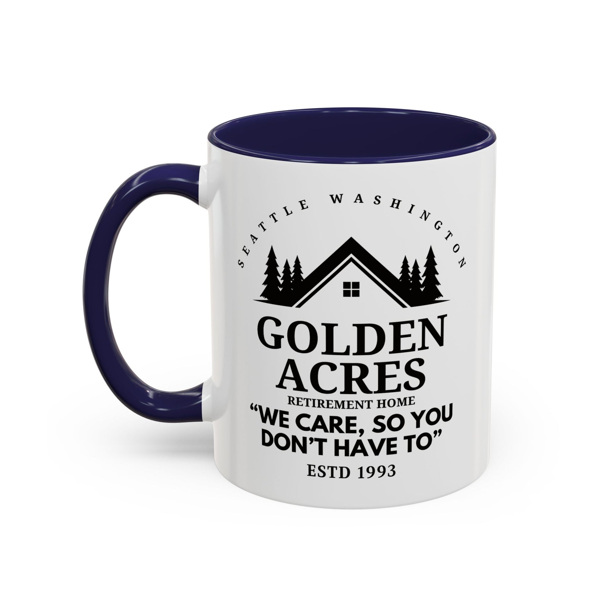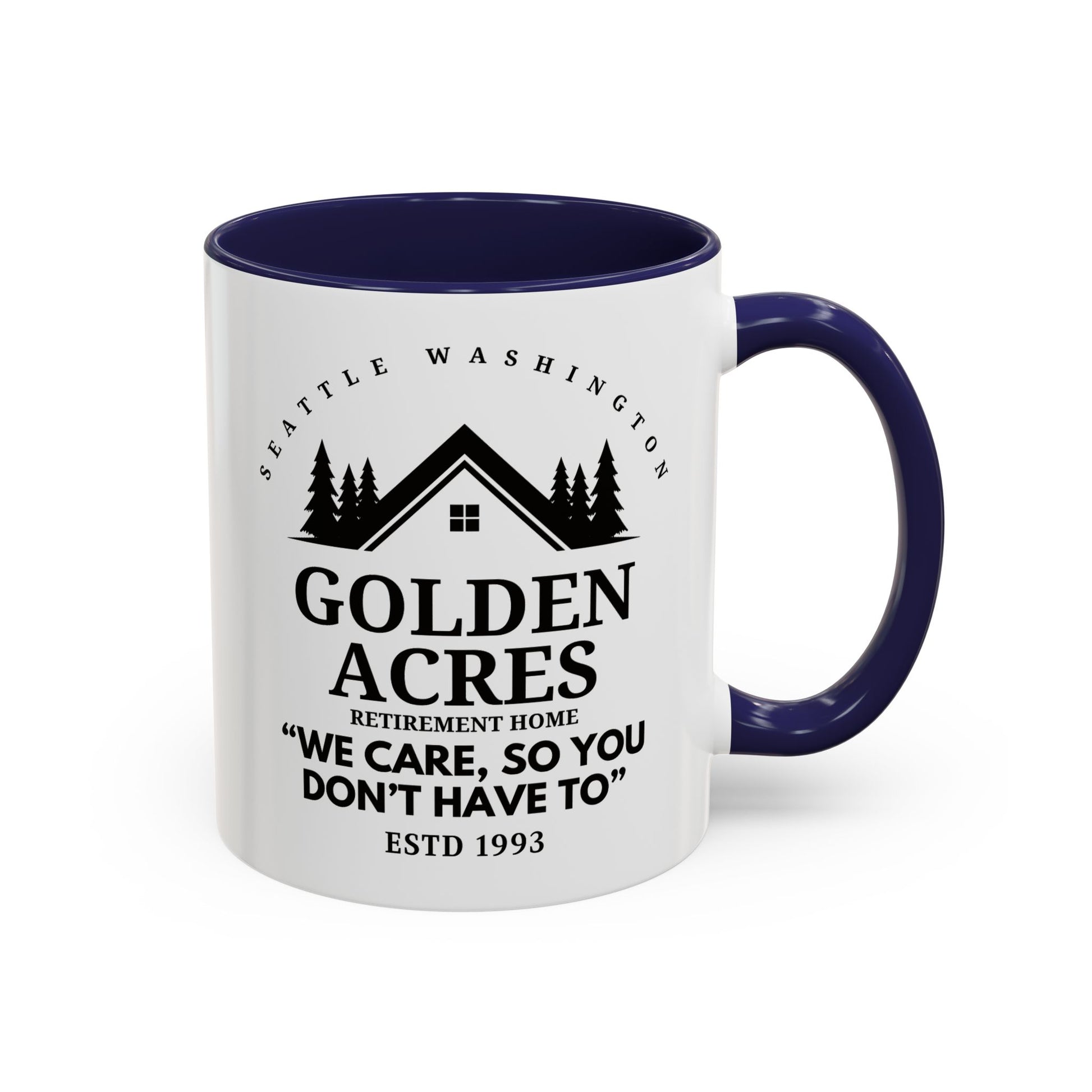Retirement Home Coffee Mug Colored Handle 11oz